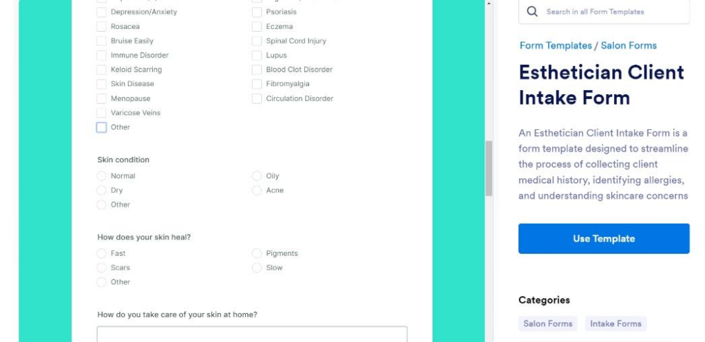 The esthetician client intake form is used by skin care professionals to get a deeper understanding of their clients’ skin concerns, medical history, and treatment preferences to create a customized treatment plan. The form normally includes: