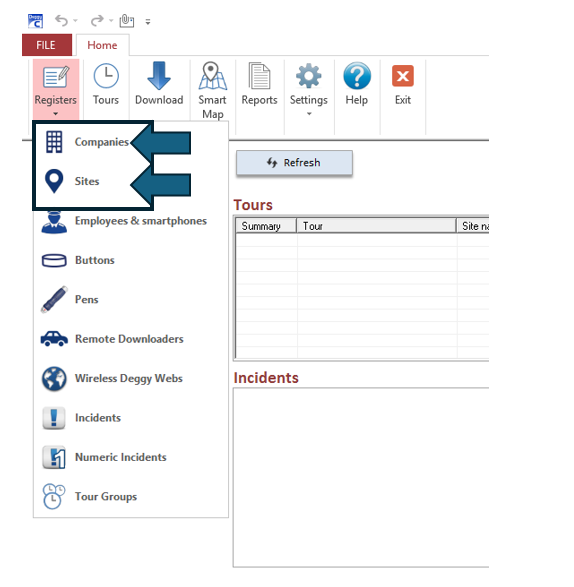 - Click 'Registers' menu - Select 'Sites' - registered site locations (addresses) listed