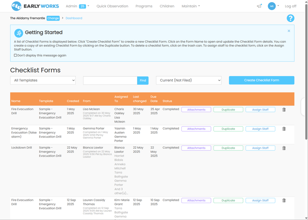 - all educators, including casual/relief educators and staff members, are familiar with our Emergency and Evacuation Policy, procedures and regulatory requirements