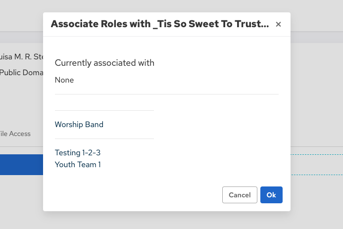 To help improve organization, worship leaders can associate one or more roles to each song file. By doing so, the person serving in that role will see the files specific to their role (for that service) grouped together nicely on the "Service Files" tab of their account.