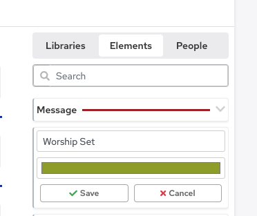 Dividers are often useful for grouping parts of the worship together. Worship planners can create customized dividers, selecting the desired text and background color.