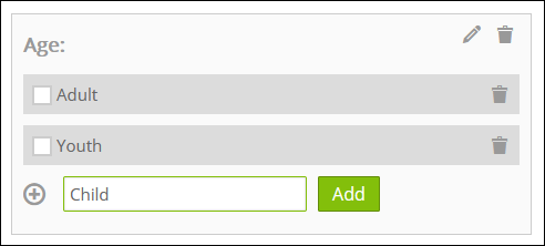 - To create a new Category (this is used to contain other properties), use the text box on the right-hand side. Type in your Category Name and click ADD to update the list.
