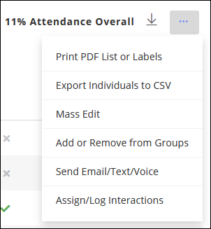 The Individual Attendance Report helps you spot attendance trends and keep people from falling through the cracks by viewing weekly attendance for individuals. This allows looking at activity across many different groups and attendance sessions.