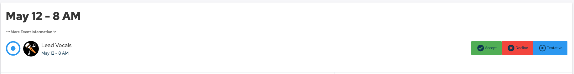 You can Accept, Decline, or mark your availability as Tentative. If you have already selected your response via the email notifying you of your assignment scheduling, you will not have to do this again. This also applies to your text response if you have that set up within your profile settings (to turn this on: click your name My Profile Communication Settings)