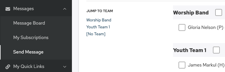 Security level 3 Planners can send a message to all Helpers and Planners, or selection thereof. To find the page that allows you to do this, hover over the Messages navigation link, then select the "Send Message" menu option.