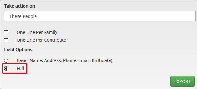 In the next options menu, make sure to select the radio button for 'Full' and then Export.