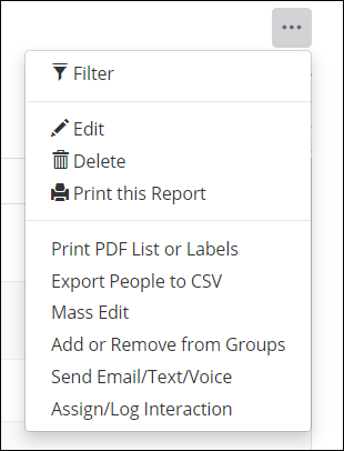 Other common functions are available through the 3-Dot Icon to complete further actions on this filtered member data.