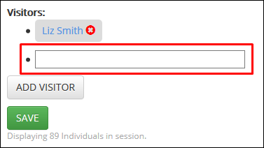 - Scroll to the bottom of the names listed and click the button to ADD VISITOR. Search and find the member, then click their name to be added to to the session.