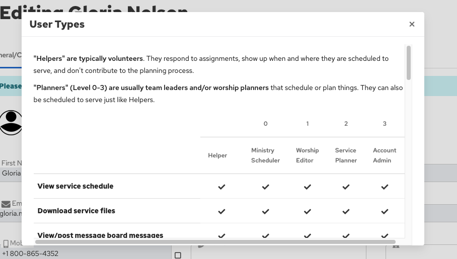 To view the table of security levels, browse to the page where you are adding or editing a Planner, then find and click the ? icon next to where it says "User Type".