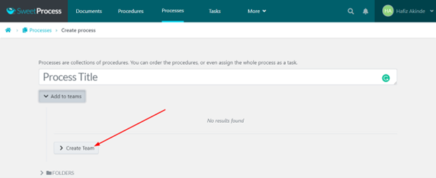 Step 5: If you’re creating a process for the first time, you’ll have to create a new team. To do this, click “Add to teams.”