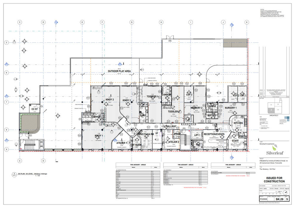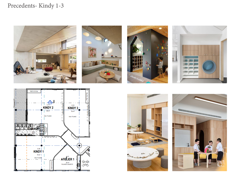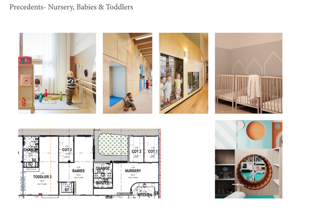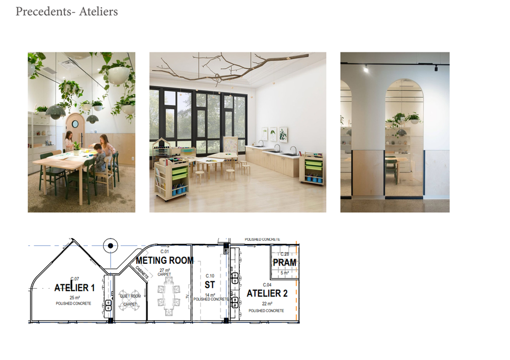 The space of all the studios, play areas, administration areas, common walkways, wet areas, and storage areas will need to be maximised. Further, all spaces must incorporate the needs of children and staff into their design and be focused on creating a sense of warmth. As much as possible, unsightly fixtures need to be concealed.
