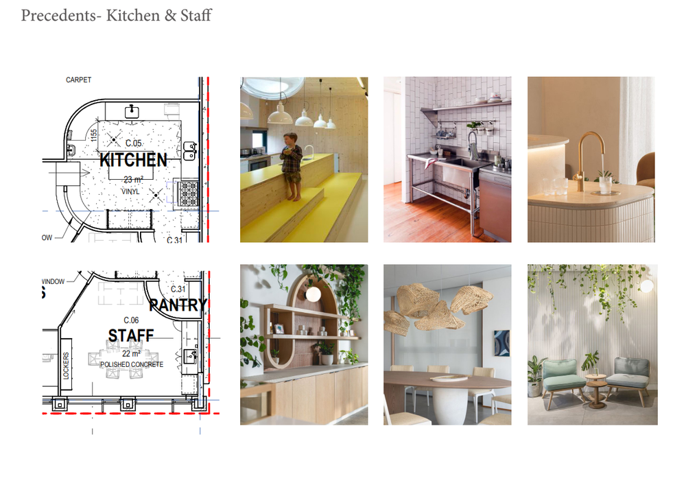 The following visual references, such as images from magazines, websites, or previous projects, are included to help understand the desired aesthetic preferences of the tenant. Therefore, the design needs to address the following perspectives and requirements: