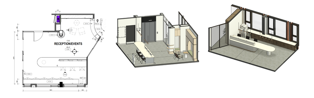 - 3D Renderings: Visualisations of the design to help the client understand the spatial qualities and aesthetic.