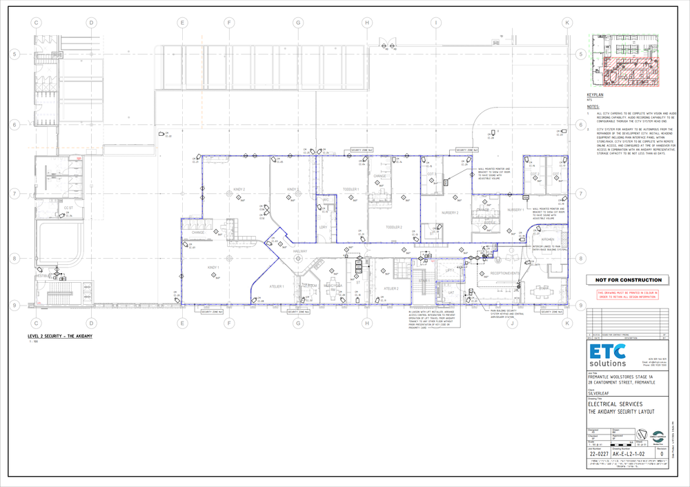 | Security Camera | In all areas, excluding the bathrooms, baby change area, UAT and Staff Room. Otherwise camera will need to be installed with day and night vision, motion detection. Camera footage backup storage for up to 6 weeks onsite and in the cloud backup. The system needs to have remote access off site to allow for remote monitoring. |