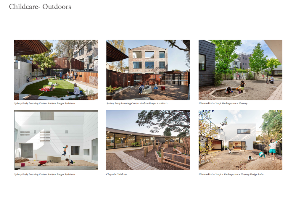As outdoor play spaces will be available to the children via the building surrounds on two sides ideally and children to be able to access their outdoor environment at any time from their indoor play areas. Basically, we want each Studio (where possible) to face the outdoor play areas of the building.