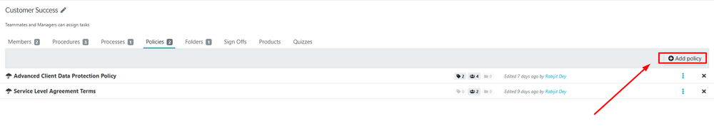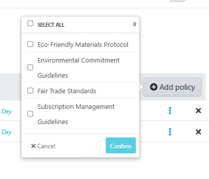 When the page opens, choose the policy you want to add to the team and click on the Confirm button.
