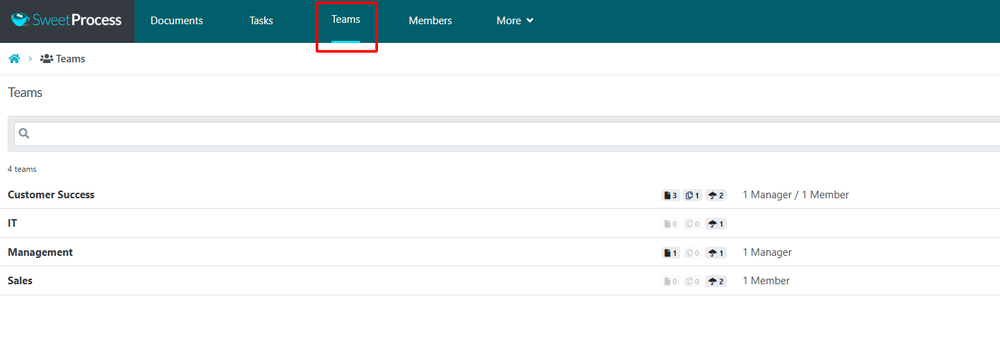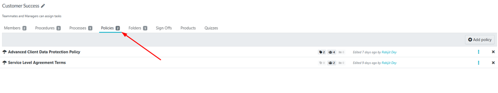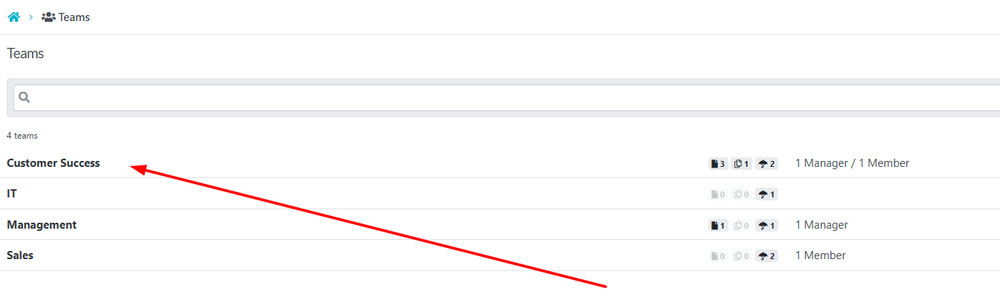 When the “Teams” page opens up, click on the name of the team you want to add the policy into.