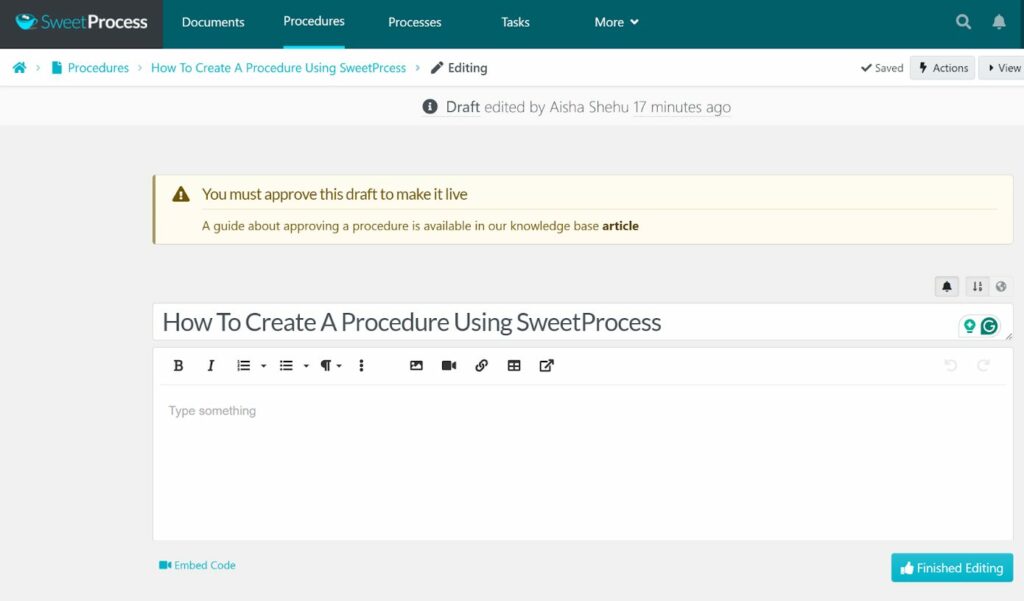 Why waste hours writing procedures from scratch? Start your 14-day free trial of SweetProcess today and take the hassle out of documentation.