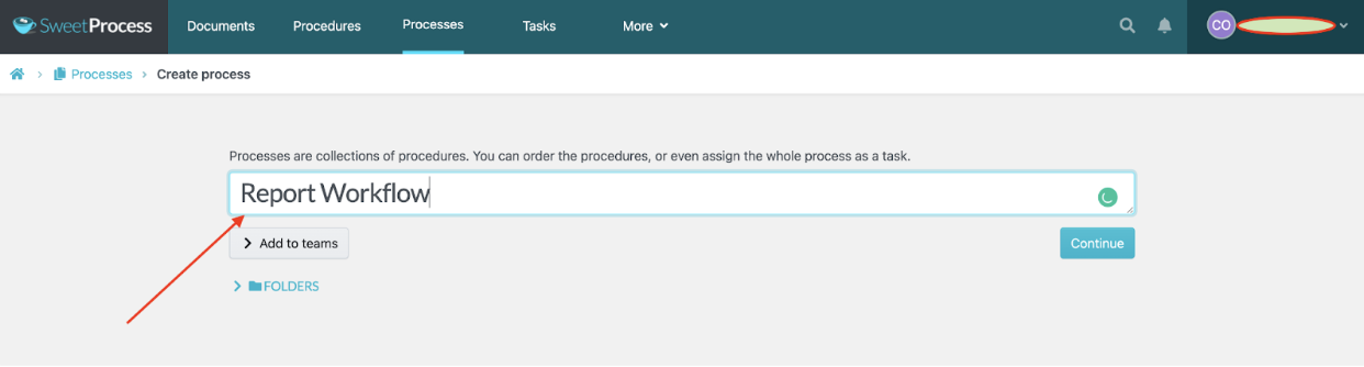 To create a process from your procedures, sign in to your account. Click “Procedures” and then tap “Create Procedure.”