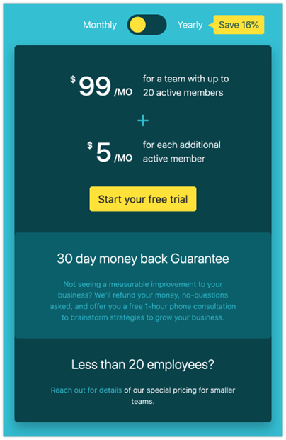 The free or starter plan allows teams with up to three users; $6 per month for each additional user. Users can access browser extension, Slack and Microsoft Teams integration, and verification on this plan.
